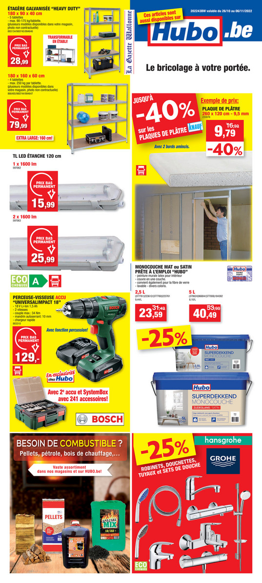 Valable 1010 - 14112022. Hubo - Les derniers folders. Daarnaast vind je op deze pagina ook contactgegevens en adresgegevens van Hubo vestigingen in Sint-Truiden.